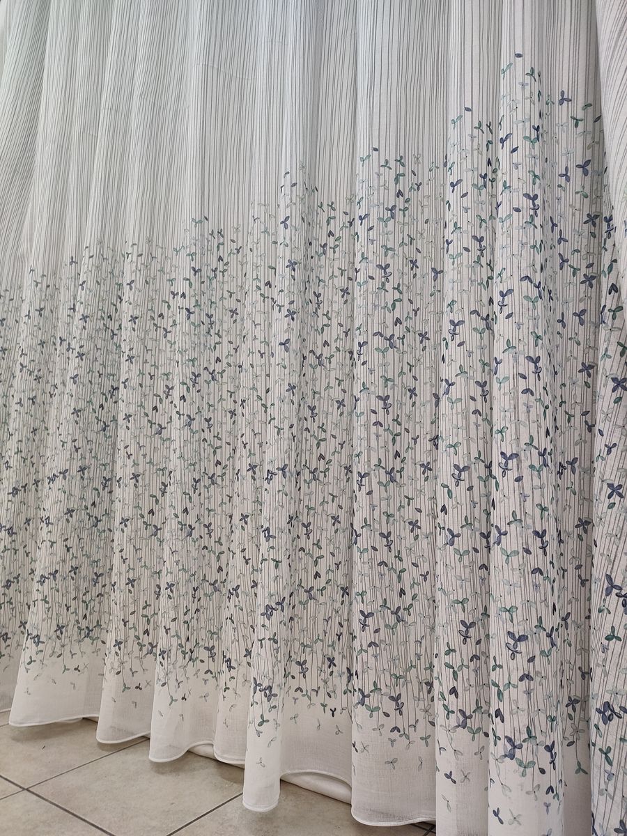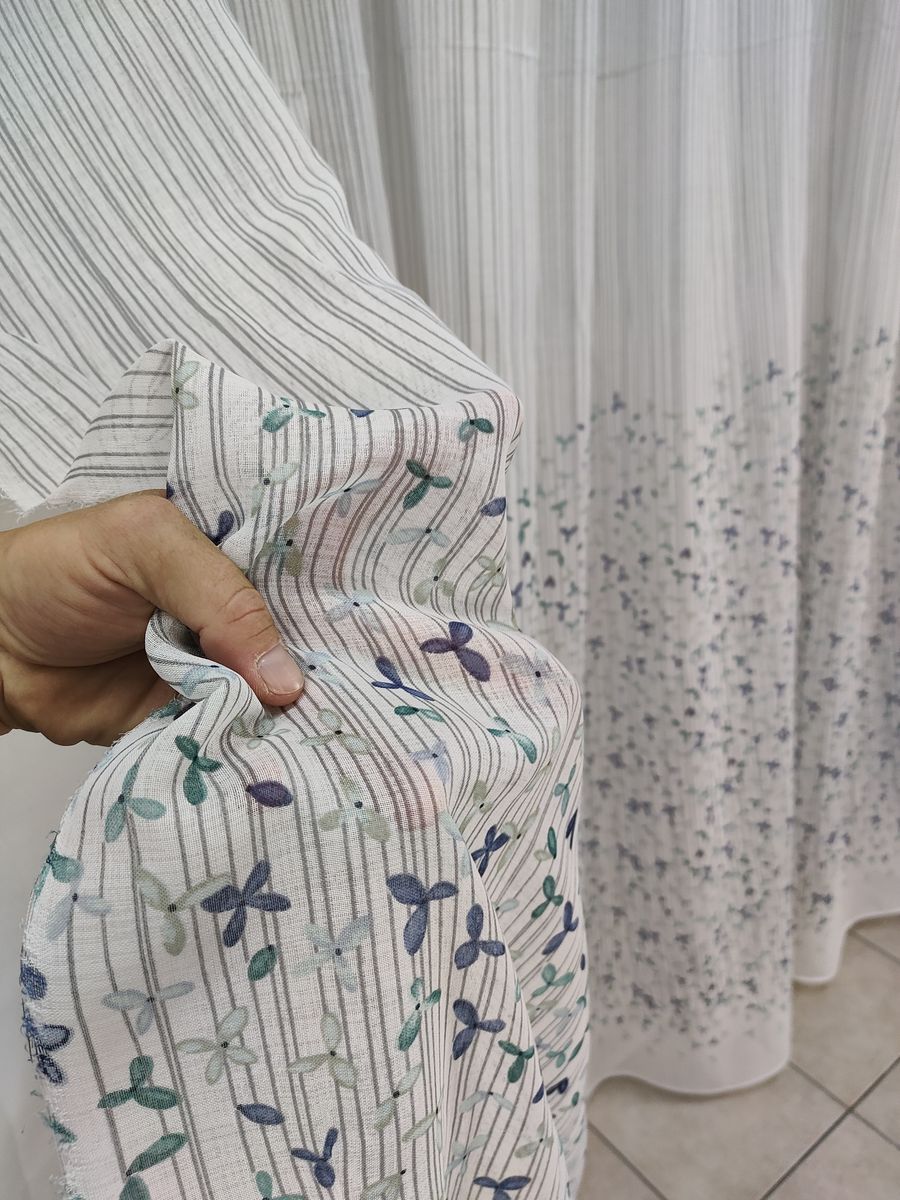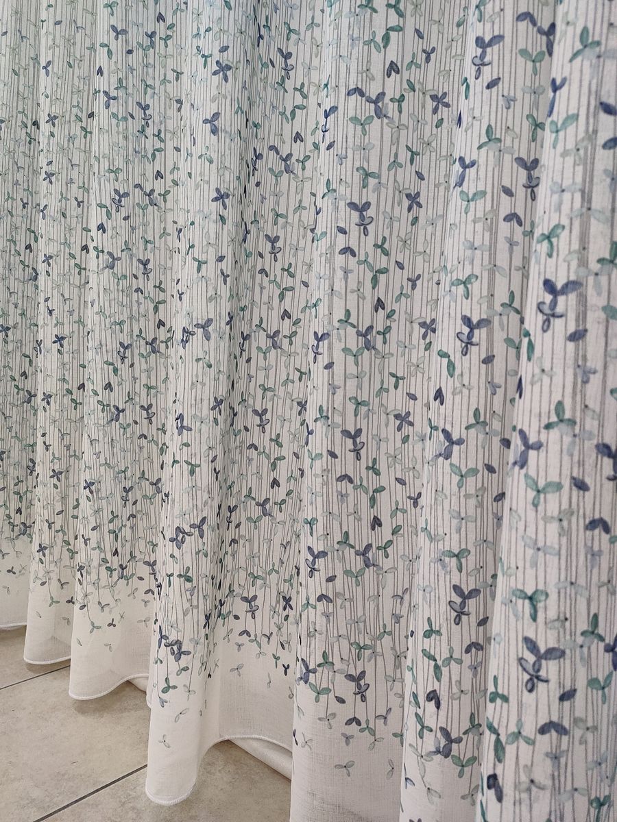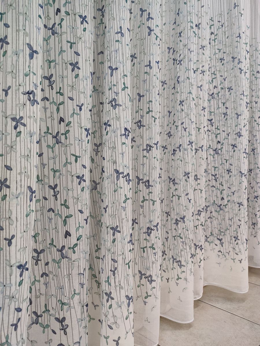 Tenda a Metro effetto lino Fiorellini Azzurro